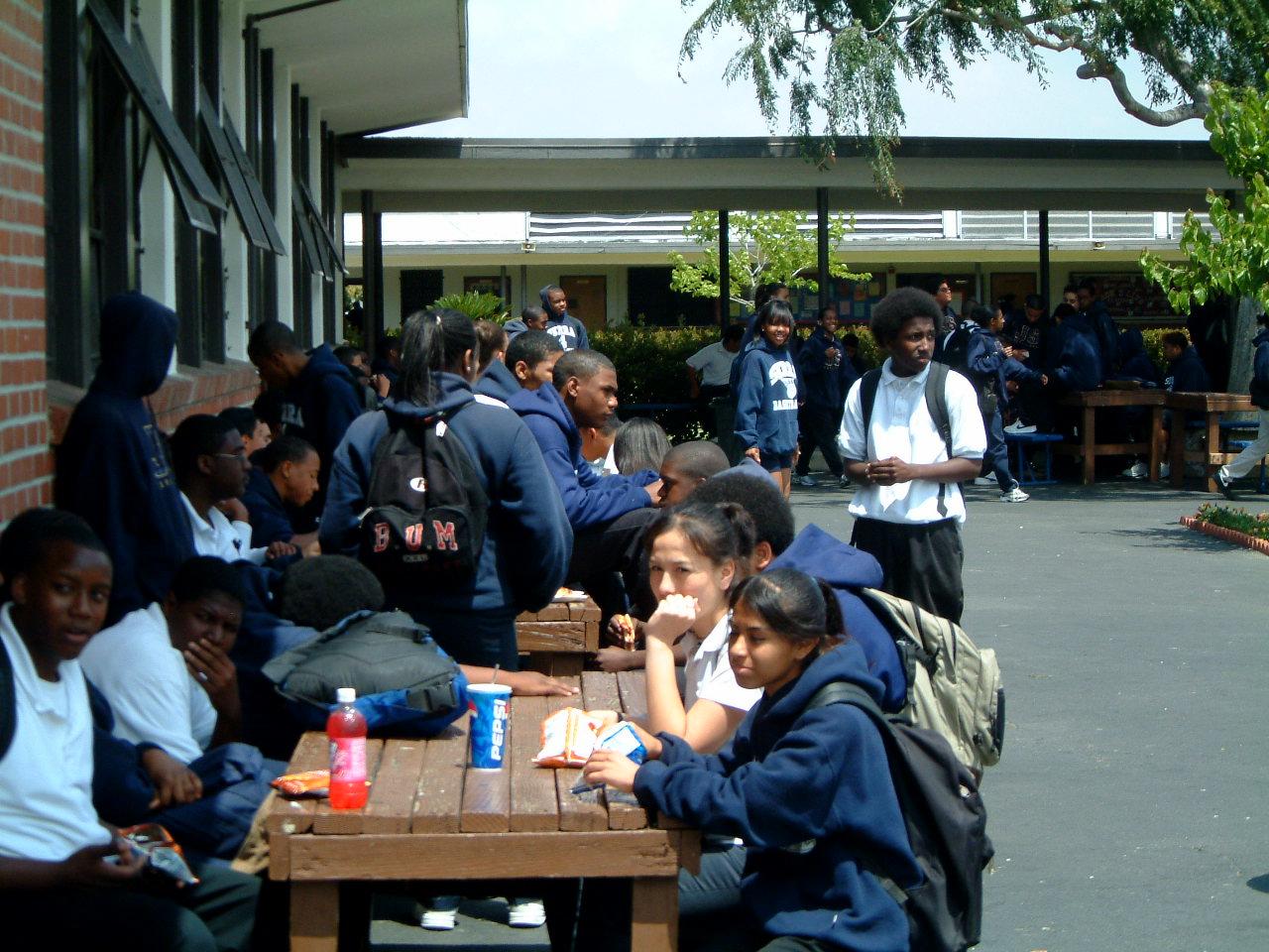 ロスではもう1つ別の高校を訪問しました。こちらは公立で知る人ぞ知るトーランスハイスクールです。ここでアメリカドラマの撮影が結構行われているそうです。有名どころでは「ハイスクール高校白書」ですね。校舎外に人が溢れているのは休み時間だからです。