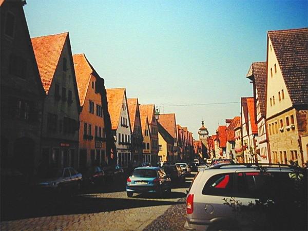 ロマンティック街道 (Romantische Straße) と古城街道 (Burgenstraße) が交わる中世の城塞街。