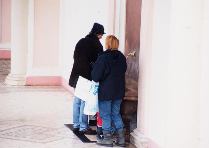 ふと、エヴィアンの源泉に行きたくなった。リヨンから列車に乗って約3時間。エヴィアンに行く途中はものすごく雪が積もっていたけれど、いざエヴィアンに到着すると風が強いだけで雪がない・・・ちょっと残念。