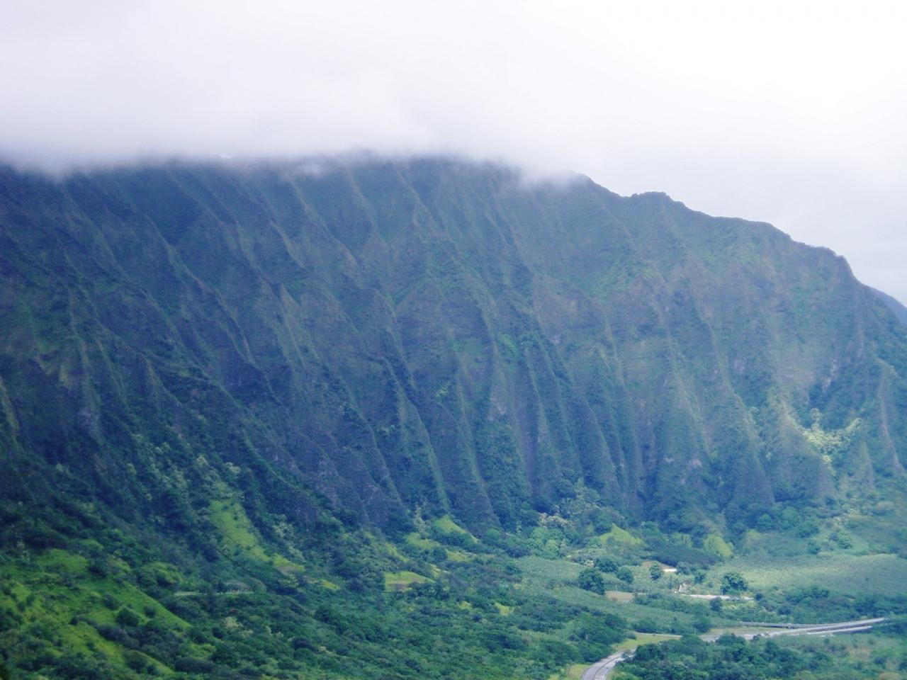 カアナ・パリという所へ来ました。ここはいつも強風が吹き付けている場所です。私達が行ったときはそれほど強い風は吹いていませんでしたがそれでも、ビュービューという音が聞こえていました。