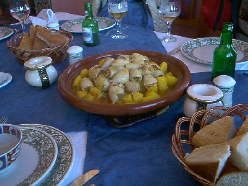 タジン料理 タジンとはモロッコの土鍋。円錐形の高いふたがあり、これで何でも煮込みます。