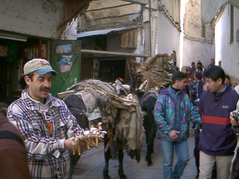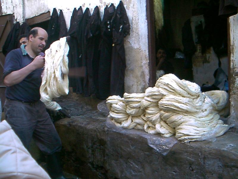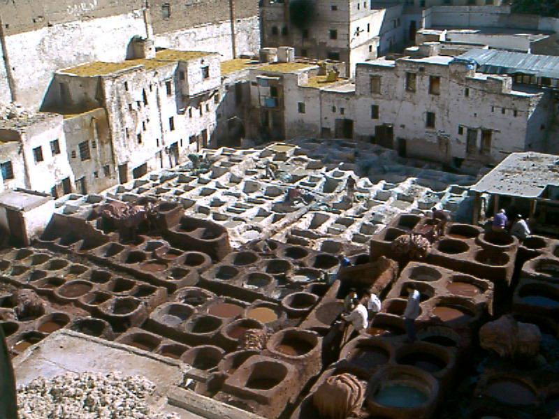 有名な皮なめし作業場・・・噂どおり臭いのでミントの束をもらって見学
