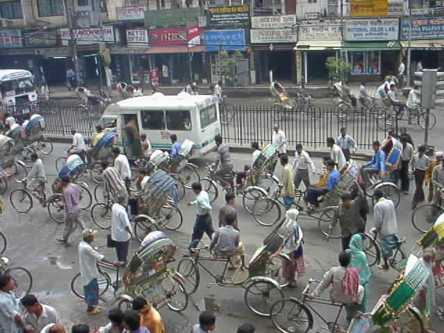 Dhaka (ferry) Barisal (bus) Mongla (bus) Bagherhat (bus) Khulna (bus) Kushtia (car) Dhaka: 米国911テロ後・アフガン攻撃の前という微妙な時期に訪問したものの、国内は選挙で盛り上がっていたためか、混乱はなかった。観光名所はほとんどなく、したがって観光客もほとんどこない。しかし(だから、というべきか)人々の親切さは私の訪問した国々の中でも5本指に入る。とにかく町中で話しかけられ、人垣に囲まれるので、まるで自分が有名人になったかのような錯覚を覚えるが、それは同時に相当なストレスにもなる。