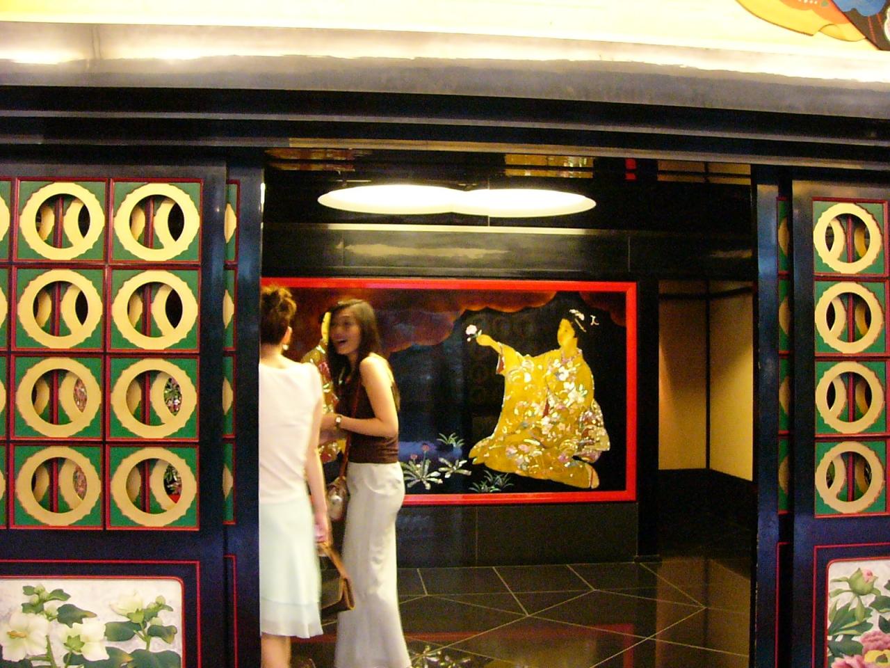 とりあえず、おトイレに・・・入ってびっくり。といれ内部には川が流れ、赤い橋がかかっています。個室も広々。ホントはお見せしたいのですが、レディの休憩所なのでお見せできないわ。残念。
