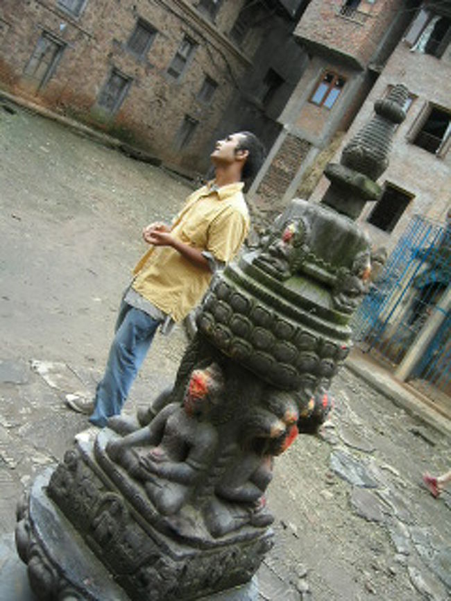 もう一人の居候、彼らのいとこMonish(19歳、写真右)とChampiの親戚を訪ねる。3人姉弟がとてもかわいかった。ネパールではいつもとても若く見られてしまうのだけど、このときはなんと16歳のお姉ちゃんに同い年くらいだと思われていた。部屋に呼ばれ、「マニキュア塗ろうよ、ティカつけようよ」と大はしゃぎ。実際の歳を知ってびっくりしていた。そのうちお母さんも一緒になってサリーを着てみろと勧められ……。 -