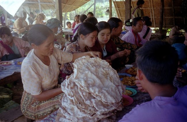 脱穀を見ていたら饅頭をもらった。写真を恥ずかしがった娘たち