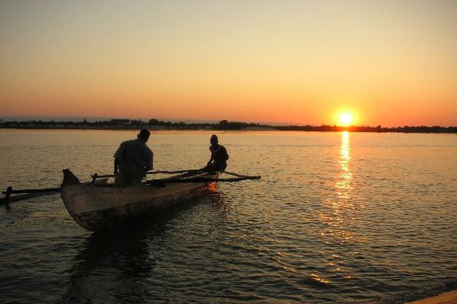 ベタニア漁村へカヌーで渡る。日の出前、漁村に向かうカヌーはなく、貸切で5000FMG、帰りは村民で満載のカヌー一人1000FMG。漁船は帆をかけ、日の出とともに次々と海へ向け出発。