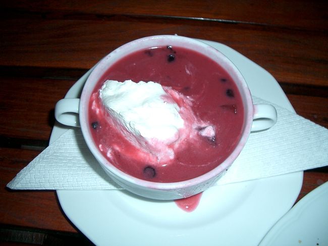 このスープはブダペストの船上レストランで食べた「冷たいフルーツスープ」です。