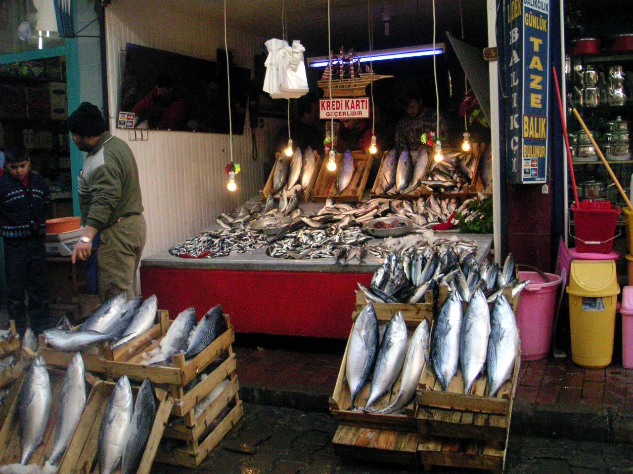 へぇー、黒海から60kmくらい内陸でも魚屋はあるんだね。ちゃんとトラックなどで輸送できるから、この交通量の多さなのか。