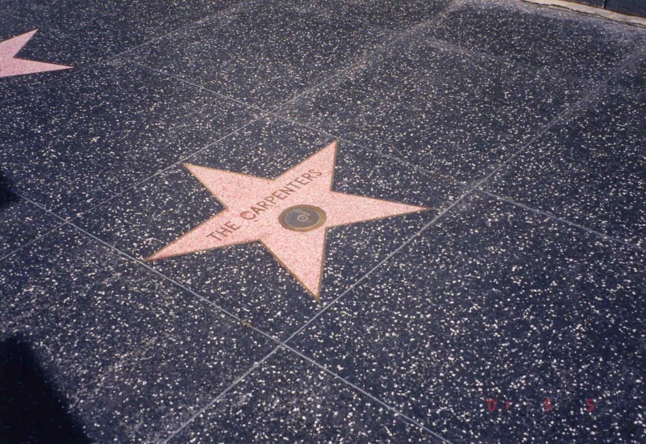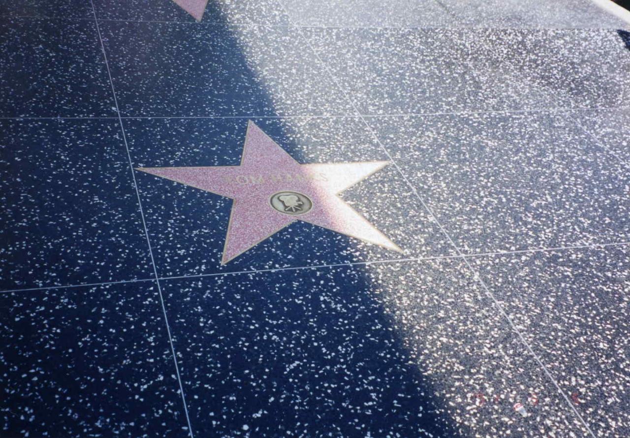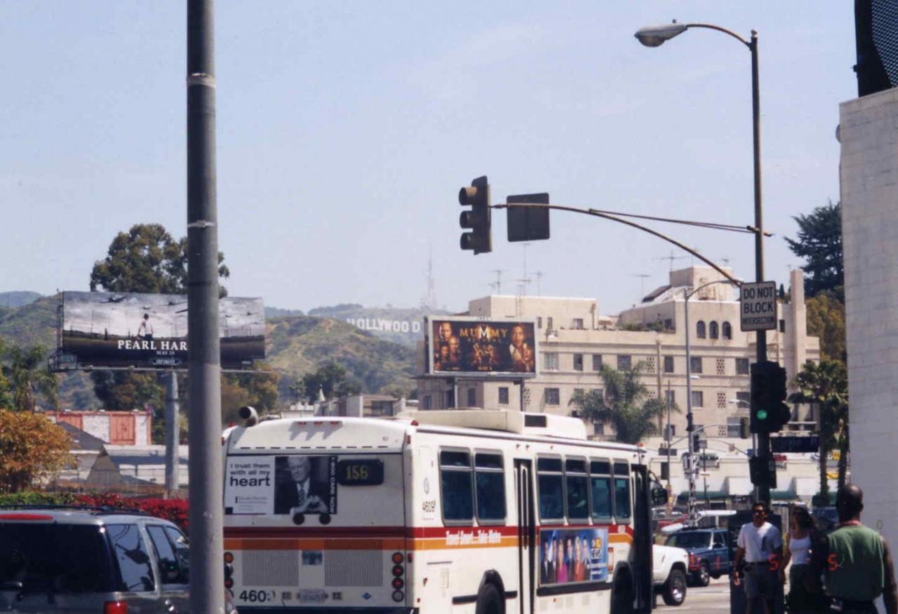 ロサンゼルス国際空港から乗り合いバンでチャイニーズシアター辺りのホテルまで行きました。次の日チャイニーズシアターに行ってみると、いきなりスパイダーマンの格好とインディージョーンズの格好をした変なおじさん達がいました。この人達はこういう格好をして観光客と写真をとって楽しんでるようでした。一緒に写真を撮ってもらっても別にお金は請求されません。道路に有名人の手形、足形をとったタイルが埋め込まれているのですが、映画「スターウォーズ」のC3POのもあり面白かったです。