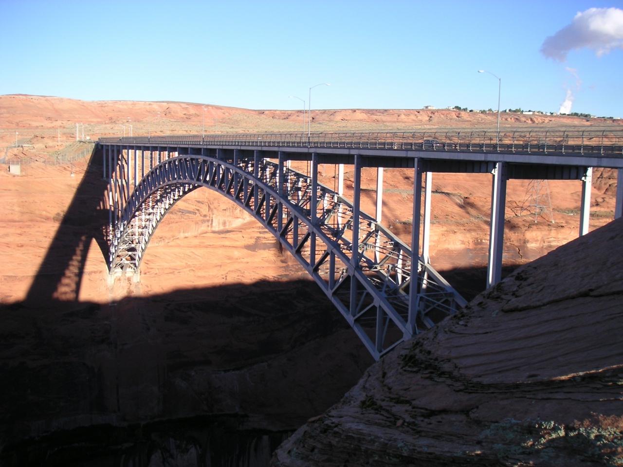 2004年10月、モニュメントバレーから、再びグランドキャニオンを経由した後のザイオンまでの長い道のりの途中、ここに立ち寄りました。12年前のこの地は、渓谷に出来たダム、橋に加え、期待以上に青く美しかった人造湖が印象的でした。今回、日没頃の到着で、やや暗く、水量が少なく、期待の青さは見れませんでしたが、ザイオン寄りの展望ポイントからの眺めは変わらず中々のもの。