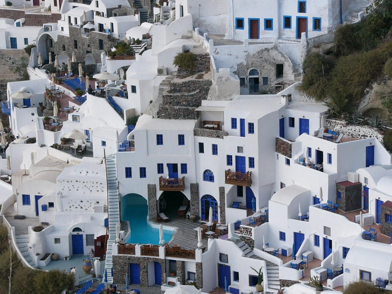 初日のみ予約したホテル・ルーカスです。とても古いホテルらしいです。サントリーニらしい造りのホテルなんじゃないかなと思います。