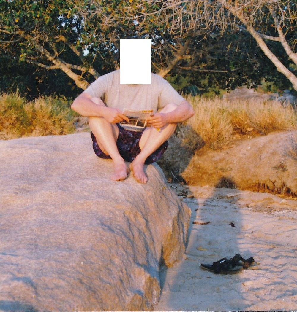 その浜辺の岩に陣取ってニュース雑誌を読むSUR SHANGHAIの旦那。