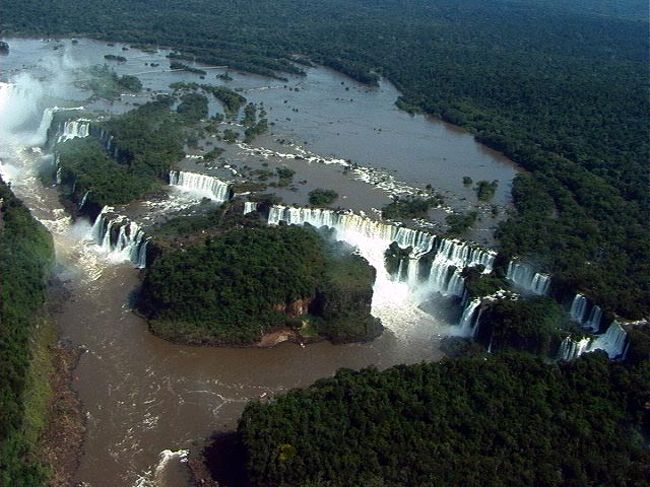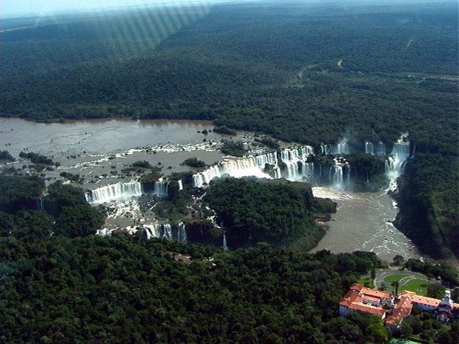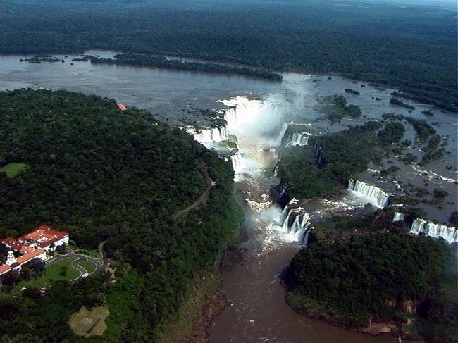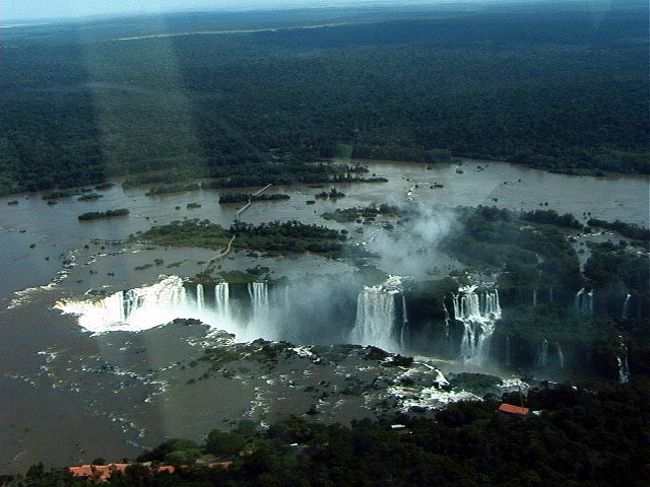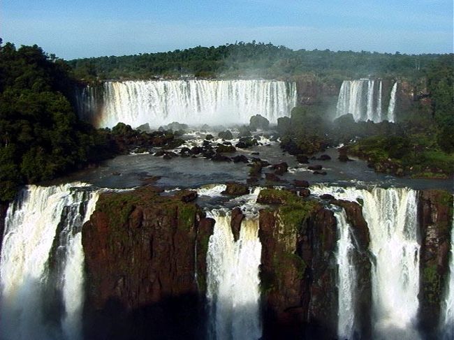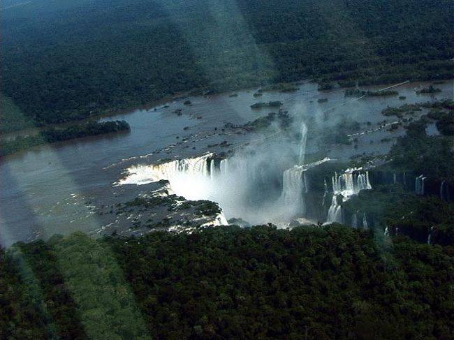 世界遺産・イグアスの滝。世界三大瀑布の一つ。世界一の規模を誇る素晴らしい滝! ブラジル側からの眺めをスナップしました。ヘリコプターで上空から、サファリボートで水上から撮影しています。本文は http://yoshiokan.5.pro.tok2.com/nanbei/nori138nanbei.html