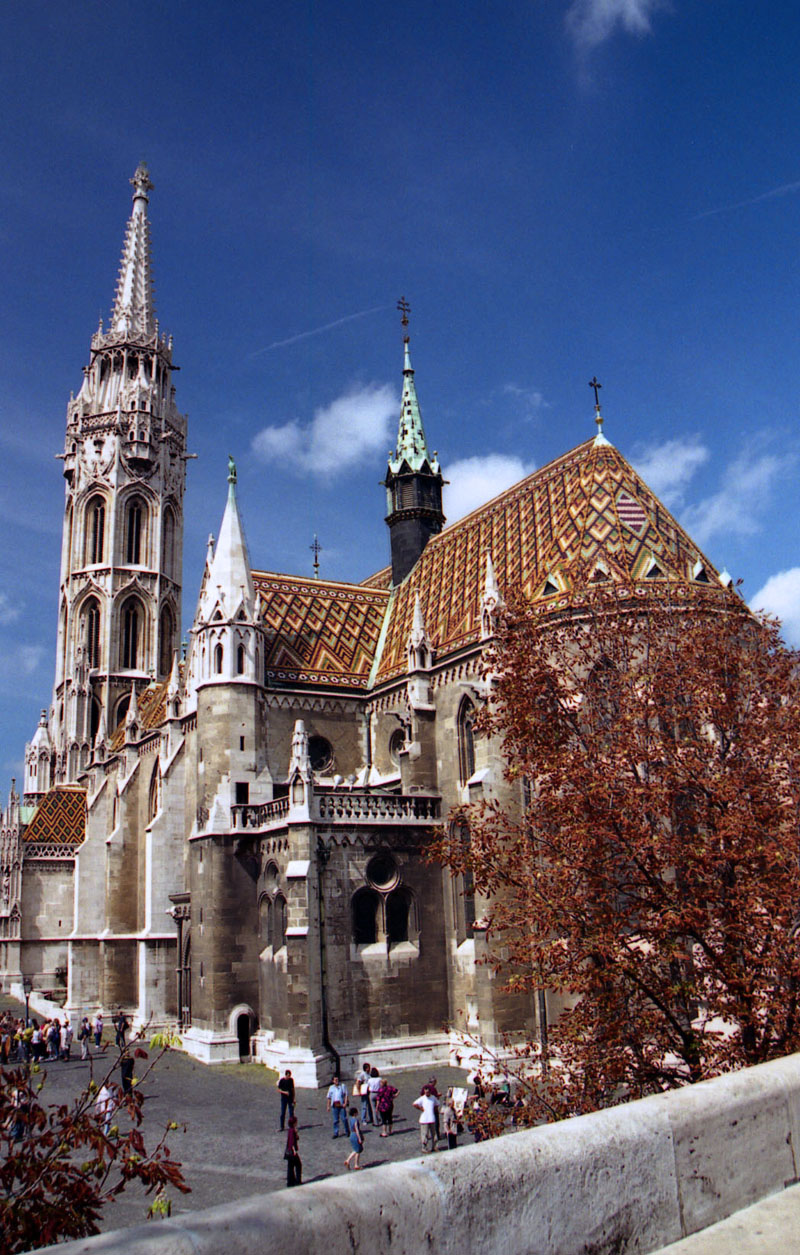 13世紀にロマネスク様式で建設され、15世紀にマーチャーシュ王により80mの尖塔が増設されました。16世紀にはトルコ軍によりモスクに改装されますが、17世紀に再びカトリック教会に戻されました。 -