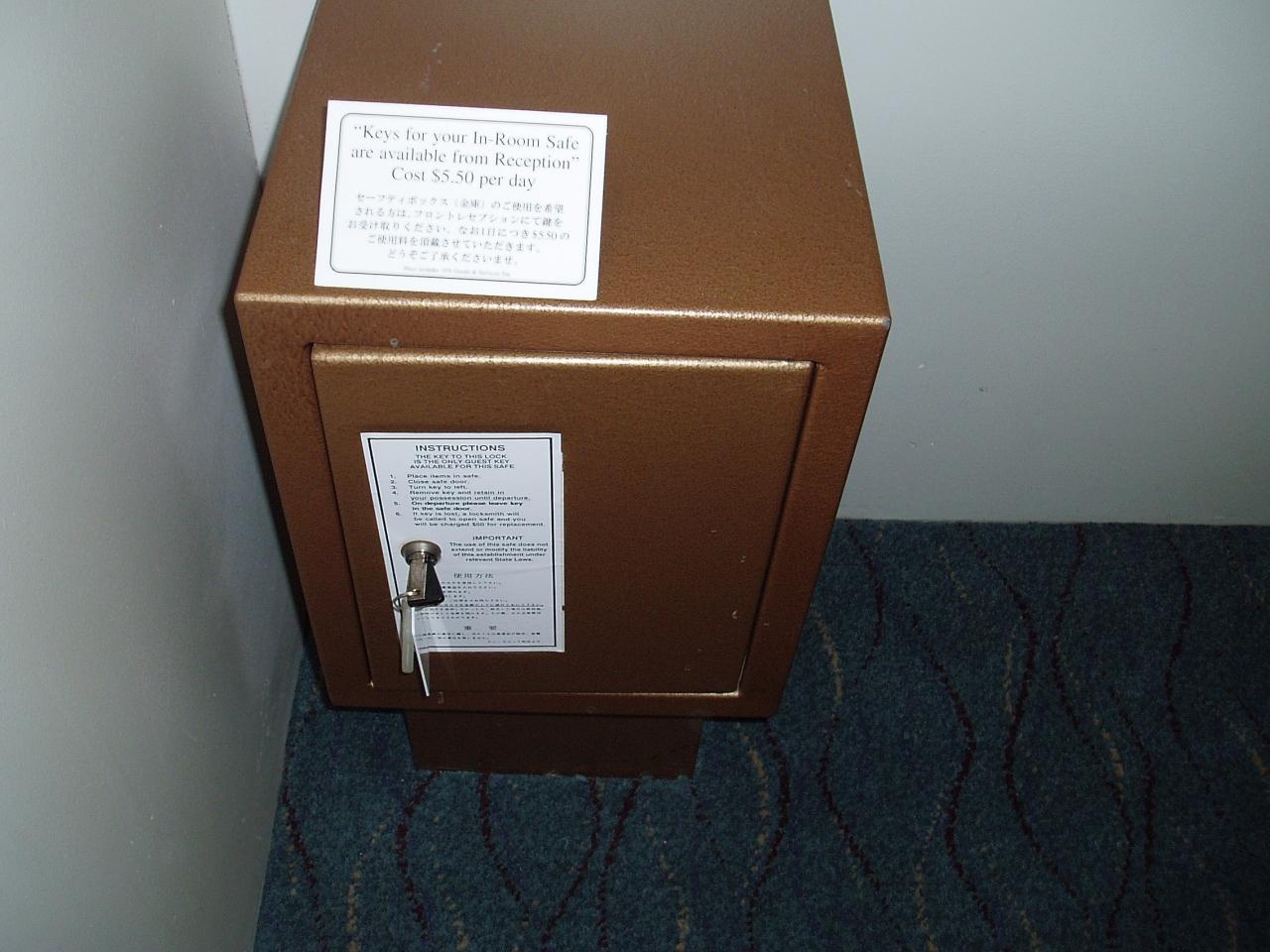 1日5$50¢のセーフティボックス。有料なんですよ〜〜〜