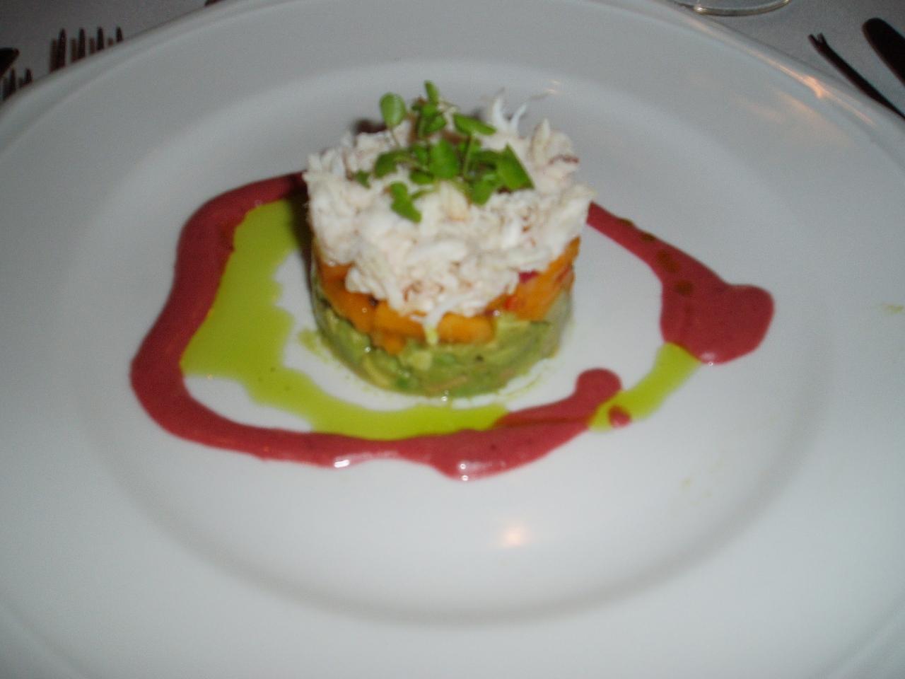 前菜「アボガドと蟹のティアン」 創作料理っぽくって美味しい。