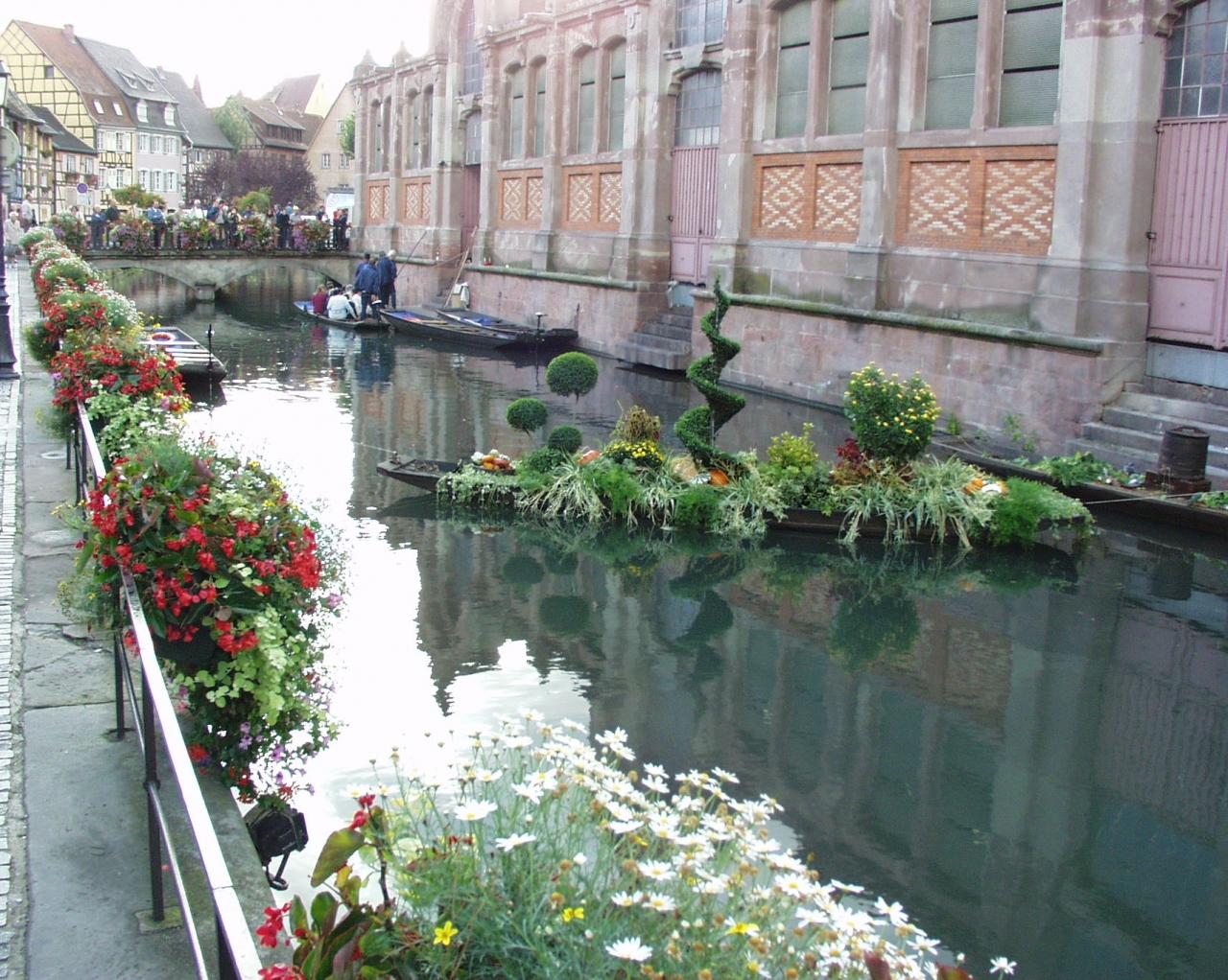 とにかく可愛い素敵なアルザスの建物に、花がたくさんある風景は、ストラスブールのような大都会では味わえない素敵なものです。女の子はみんな好きだろうと思います。川の中にも花がいっぱいでした。