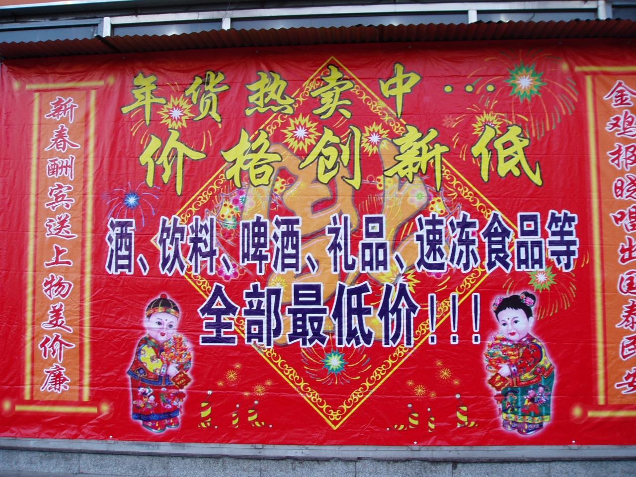 新華街レストラン街の南側を撮りました。まっすぐ行くとこの路の南端、青年湖に突き当たります。