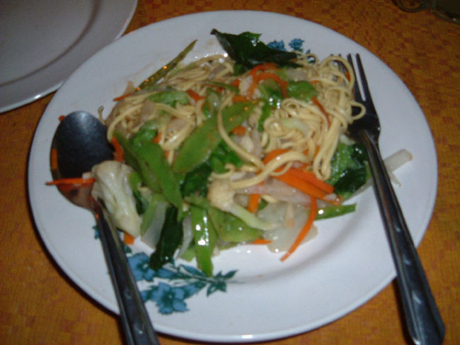 メニューにはなかったけれど、ミャンマーの麺料理を食べさせてもらいました。ピーナッツのスープをかけて食べます。なかなかうまい。