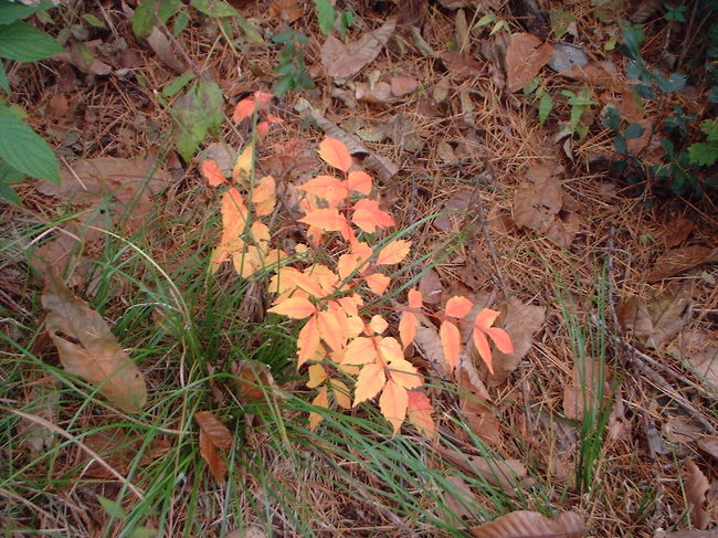 その前の広場にベンチがあって、落ち葉が敷き詰められている。