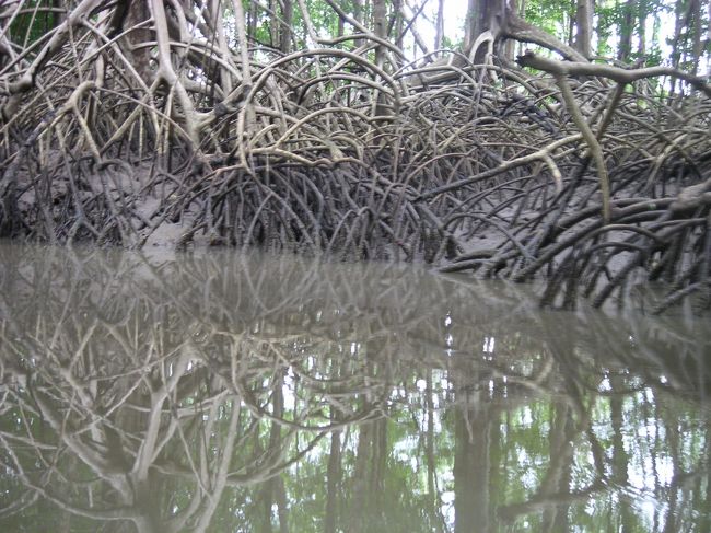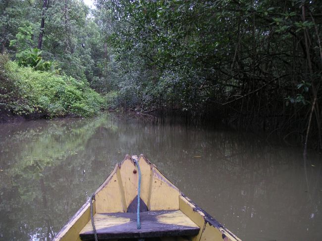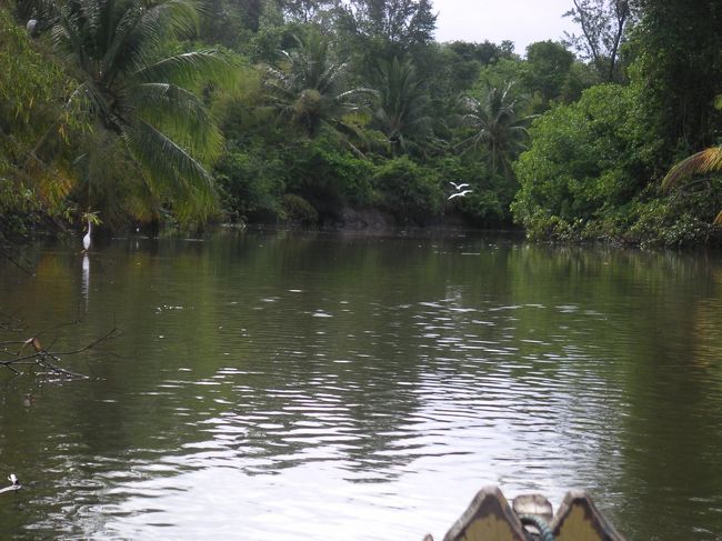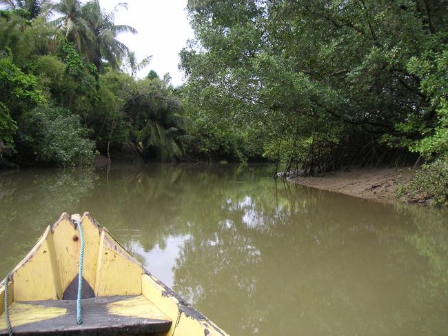 手漕ぎボートでマングローブの茂る水路に。海のようなアマゾン川の河口付近のビーチ、バッファロー、赤い鳥、大量の蚊、突然のスコール。
