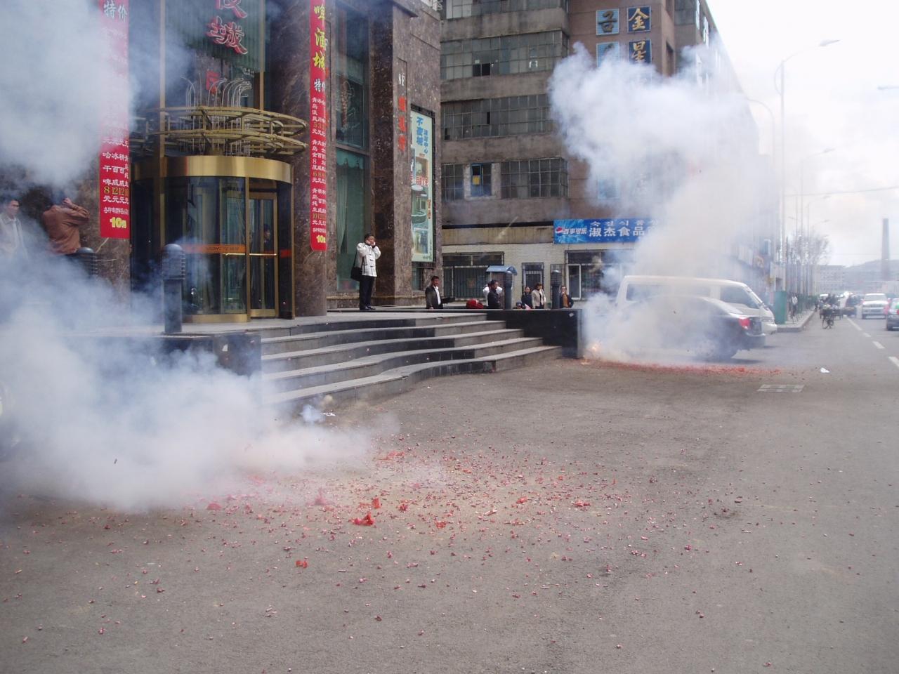 爆竹を鳴らすのは、悪を払うという意味があるそうです。