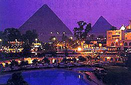 6時に起きてホテル探検。プールの横の宿泊棟の外階段の上からの眺めが、パンフレットに出ていた写真。ピラミッドとプールの青が美しい。イギリス人の陽気なオジさんも加わって、ピラミッドをつまんで見えるようになる写真を撮る。デジカメは撮り上がりを確認できるので便利。ボーイさんよりトランクに貼るシールをもらう。