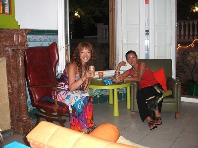 史恵里とセルヴェッサ(スパニッシュでビールの意。プチかぶれてみました♪)でロビーで乾杯☆ここは部屋に冷房はありません。真夏真っ盛りの8月だったから、暑いは暑いんだけど、すっごく湿度が少ないし、夜中は少し涼しかったりするので、窓を開けて寝てました。