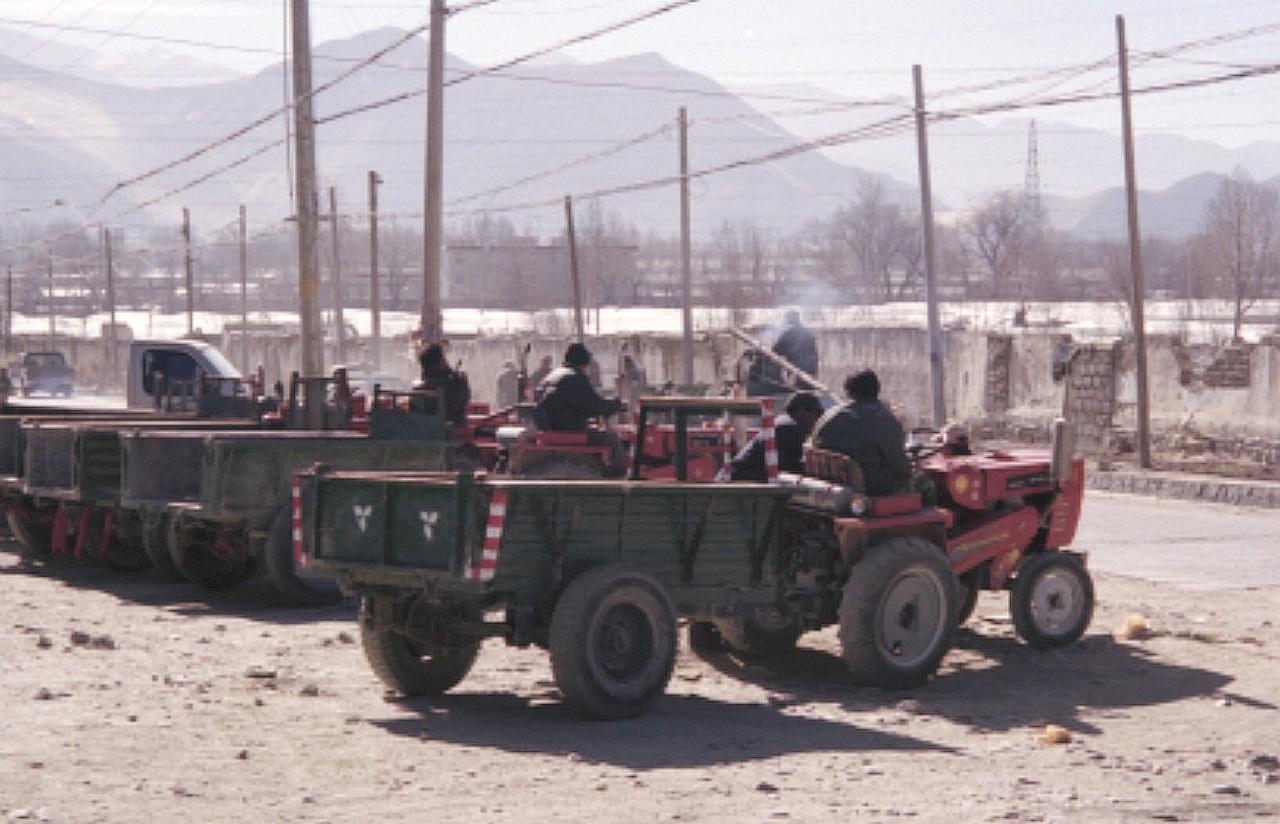 デプン寺の麓のトラクタータクシー。