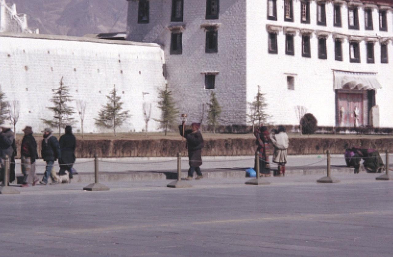 マニ車(1回転で読経1回の功徳)を回しながらポタラ宮をコルラ。