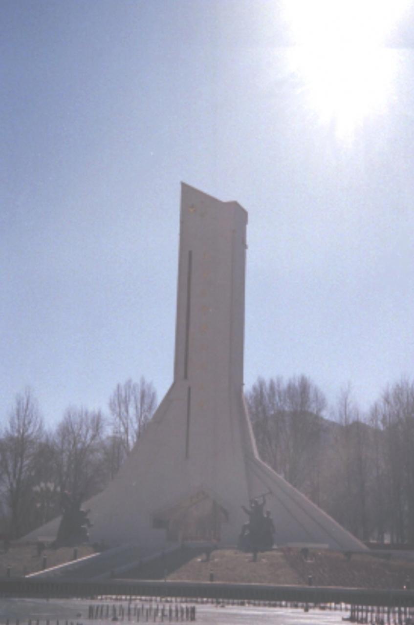 衛兵が警戒しポタラ宮に対峙する「西蔵和平解放紀念碑」(江沢民2001年10月1日)