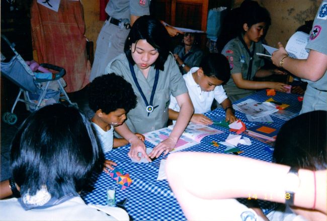 ブラジルの日本語学校の生徒たちを中心に、サンパウロの住宅街の一部で琴・尺八の演奏やおりがみなど日本文化を紹介していました。 -