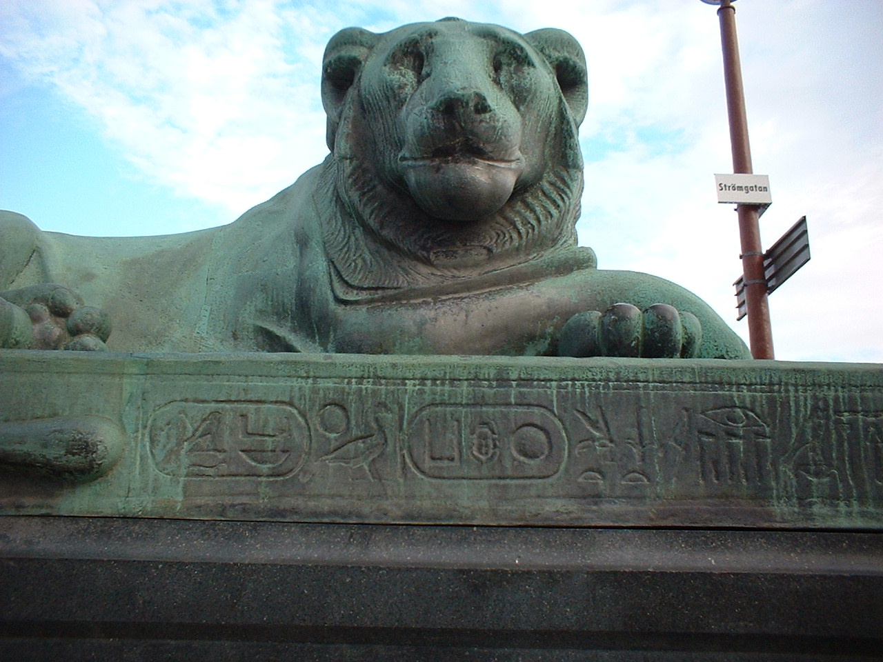 おや。ふと気が付くと、目の前にあるライオンの像に象形文字が彫ってある。これ、どうやってエジプトからやってきたの。その経過を考えてみた。