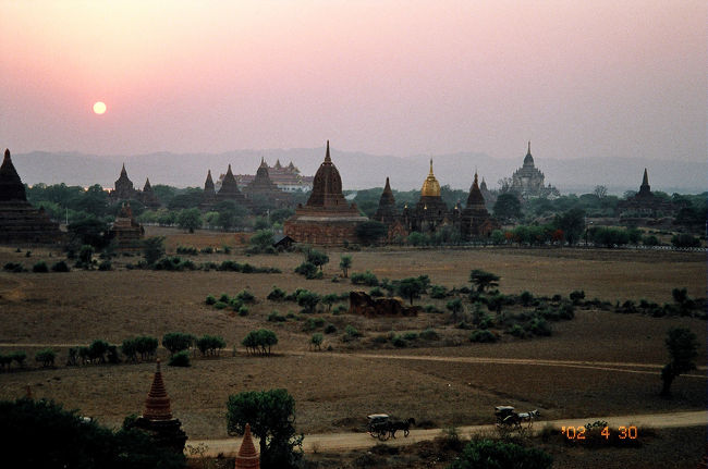灼熱のバガンもさすがに朝はさわやかです。パゴダの入口は夜間は閉まっているのですが、この時間になると子供がカギを開けてくれます。テラスに上がり日の出を待ちます。小鳥のさえずりの中、次第に明るさが増し、バガンの大地を埋め尽くすパゴダの輪郭がうっすらと浮かび上がってきます。夜間つけられていた大きなパゴダの照明が消えます。ここに朝やってくる旅行者は数えるほどで、皆静かに待ちます。やがて朝日があがります。写真をとる者、瞑想にふける者、思い思いに今日一日の始まりを楽しみます。やがて三々五々帰っていきます。