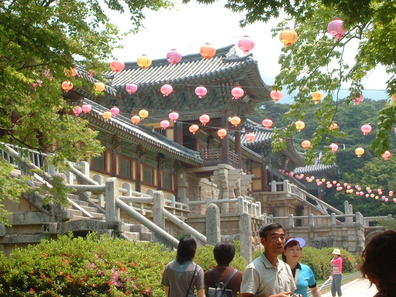 慶州の佛国寺は三日目に行きました。門前町の一番手前の食堂で昼食代わりに冷麺を食べ、ここに荷物を預けて見学に出かけたのですが、一人でここを切り盛りしてるおばさんが大変親切で、マッコリは出してくれるは、暑いからといってミネラルウオーターは持たせてくれるはで、おまけに帰ってきたらフレッシュジュースまでサービスしてくれました。