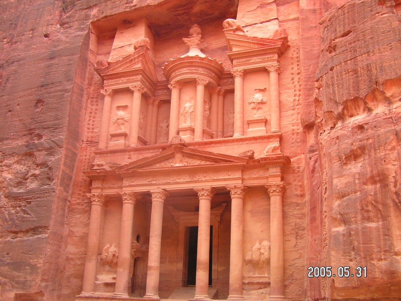 ペトラの中は初日4名で見に行った!! 途中Nさんが日傘をさしながら歩いているのを発見!! 結局5名で一緒に!!しょっぱなのエルハズネ!! まさにパンフレットで見たよ〜ってなもんで、しかも 本当にでかい!! エドディルに着いたころには結構くたくたな自分がいた(笑)