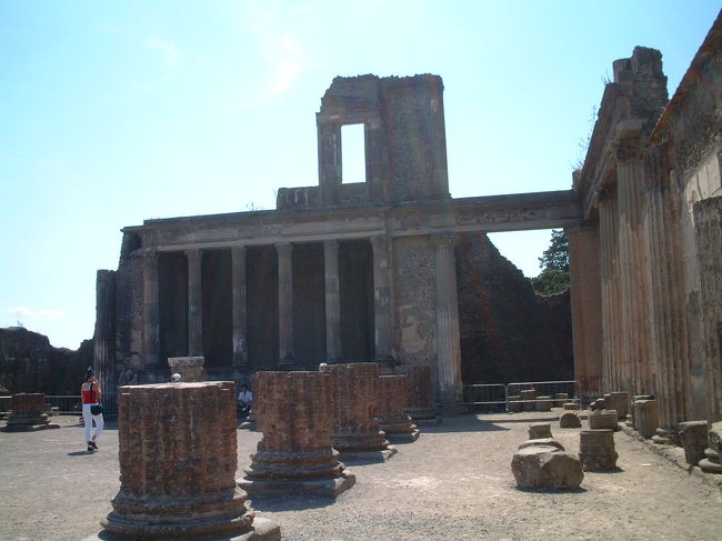05年8月8日。青の洞窟を見れなかったので、午後にはナポリへ戻り、それから昼食を取り、一息ついて、ポンペイへ。チケットを買うため、長蛇の列に並び、やっと自分の番が来たと喜んだのもつかの間。窓口のおじちゃんに「ココじゃなくて、地下で購入しろ」と言わた。本当にイタリアの鉄道事情は、悪い!非効率的。(日本が良すぎるのかな?)気を取り直して、地下に行ったら、待たずに切符を買えました。ヴェスーヴィオという周遊鉄道でした。ナポリからポンペイまで片道40分。地球の歩き方によるとFS線のIRで28分、ICで20分と書いてあったのに、なんで窓口のおじちゃんは、周遊鉄道を進めたのだろう???まあ、安かったからいいか。(往復で4.5ユーロ。ちなみにFS線だと、私が調べたところによると、片道4.76ユーロ)