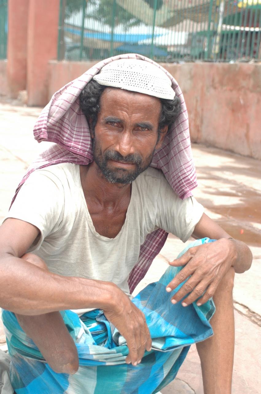 入り口にいた、右足のすねから下がない人。