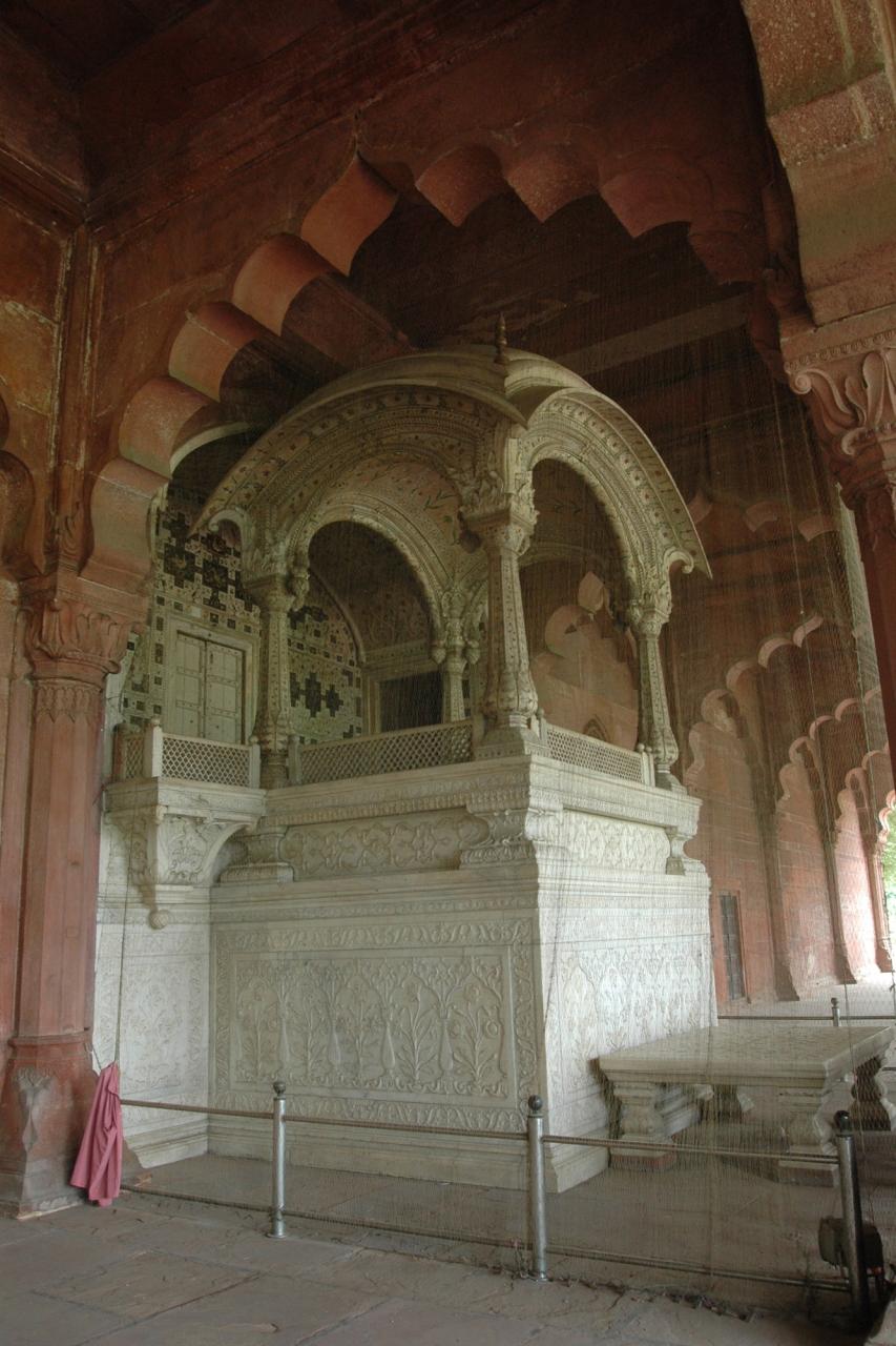 白い大理石の玉座に第5代皇帝シャー・ジャハーンが