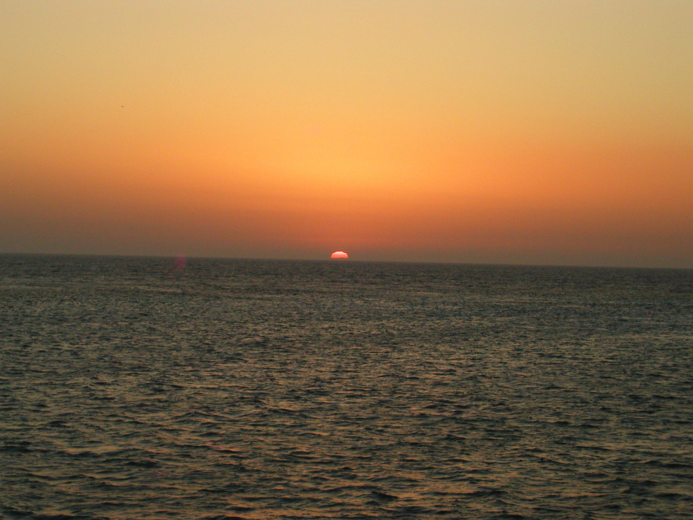 雲がないので素晴らしい夕日です。