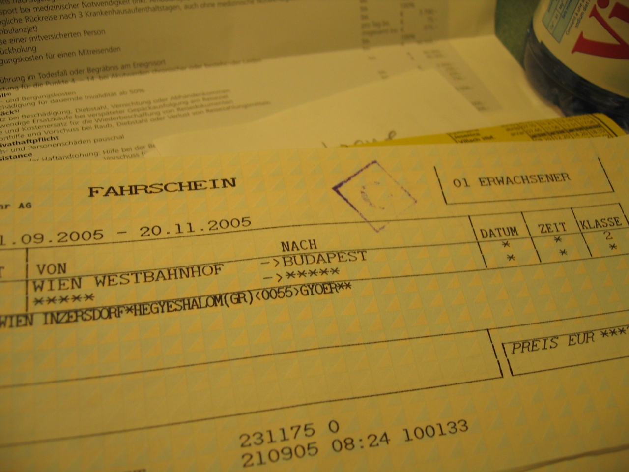 ハンガリーはEUでないため、車中パスポート検札があった。ハンガリーの軍隊のような検札官に”パスポート渡しなさい(たぶん、ドイツ語でこんな感じでいったのだろう)”とパスポートを奪い取るように取られ、スタンプを押してもらう。汽車の絵が描かれているかわいいスタンプ。 -