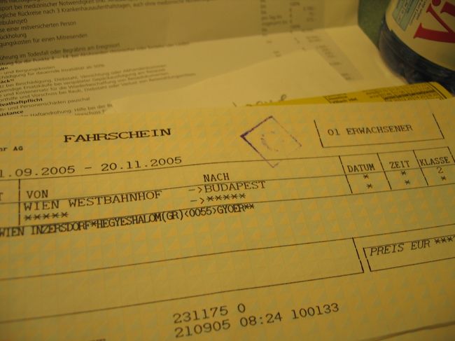 本当はこの日、ウィーン市内観光をするつもりであったが、朝起きると雨模様だったため、ウィーンはやめて、日帰りでブダペストに行くことにする。ホテルからダッシュで走り、窓口で切符を買って、列車に飛び乗る。約10分間の出来事。8:38ウィーン西駅出発。