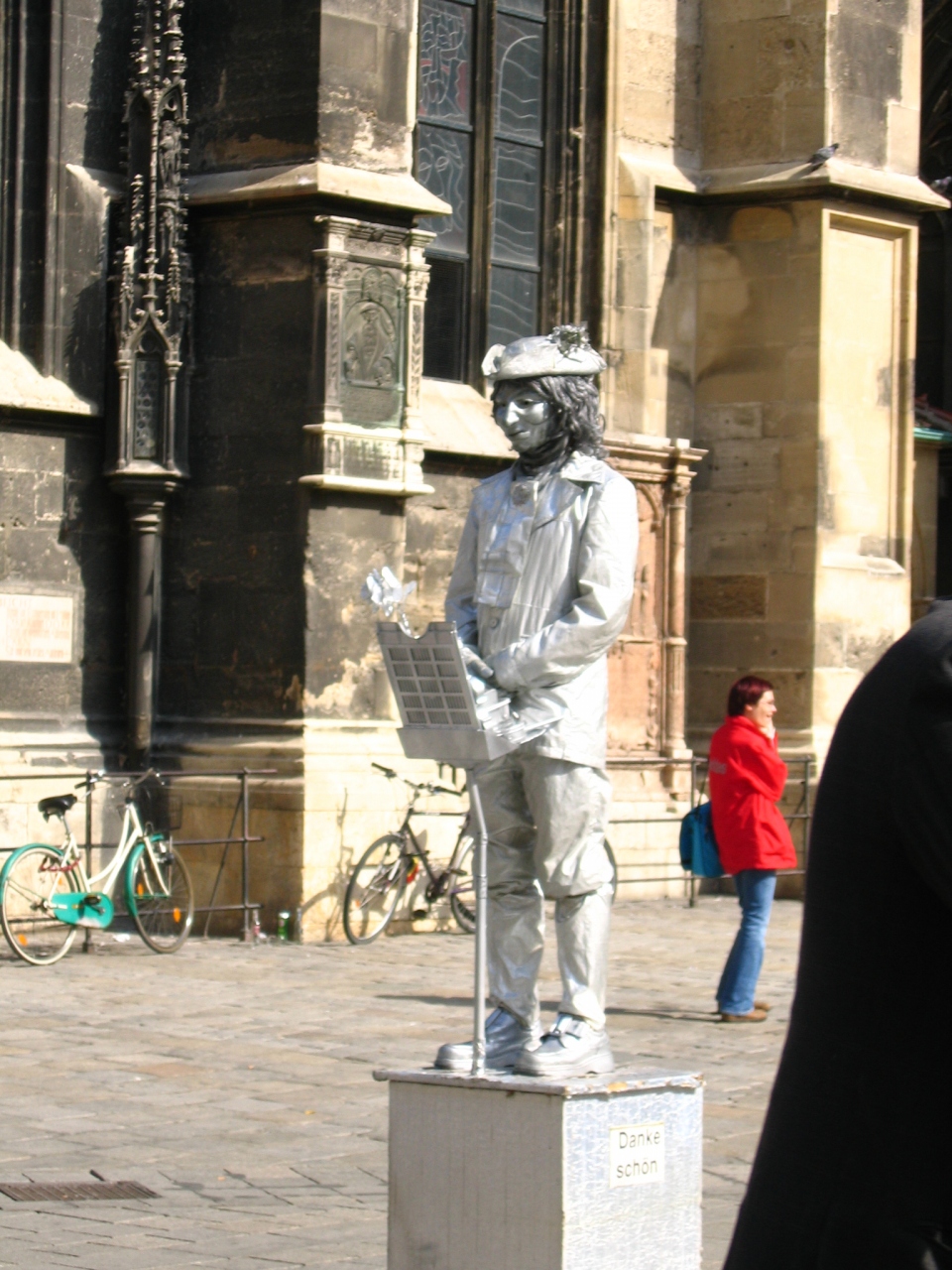 石像の格好をして、ひたすら立ち続けるストリートパフォーマなど。ちかーくで見ると、お化粧大変ですねと声をかけてあげたいくらい、かなり×10の厚化粧。 -