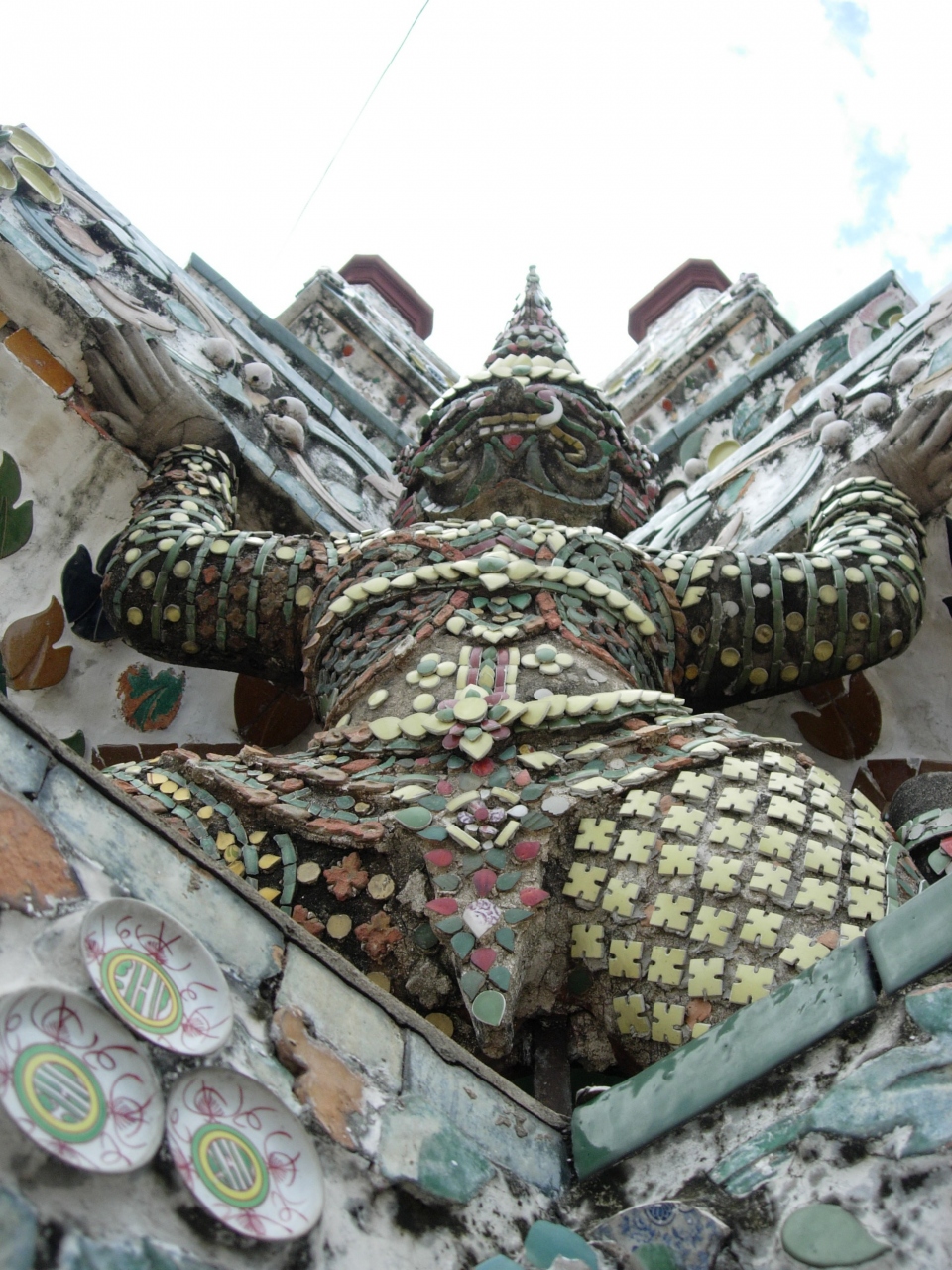 が、しっかり観光もしました。ワット・ポーや、ワットアルン・王宮なども全て2度目だったのですが、やっぱ、作りは繊細でした。地球の歩き方にも乗っていますが、ワット・アルンには自分の顔をはめこんで、写真を撮るコーナーがあるのですが、そこで写真を撮ると、タイ人がふらりと現れてお金を要求してくるので要注意ですよ。私はしばらく観察していたら白人カップルがまんまと写真を撮って、タイ人ともめてました・・・
