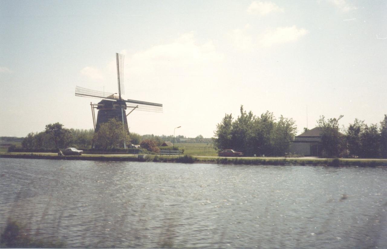 バスで郊外へ。緑の平地を走る。水路があちこちに延びていて、水面の高さは確かに地面より高い。風車もいくつか現れた。まさにオランダのイメージ。やがて1つの風車の近くで小休止。駆け寄って見ると、風車は想像以上に大きい。あたりは静かで、遠くで馬が草を食んでいる。水路の水は澄んでいた。チリン、チリン、とアイスクリーム屋。つられて何人か買った。