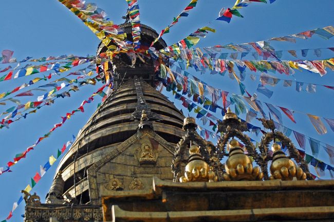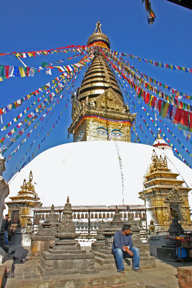 町の小高い丘にたつネパール最古の仏教寺院です。