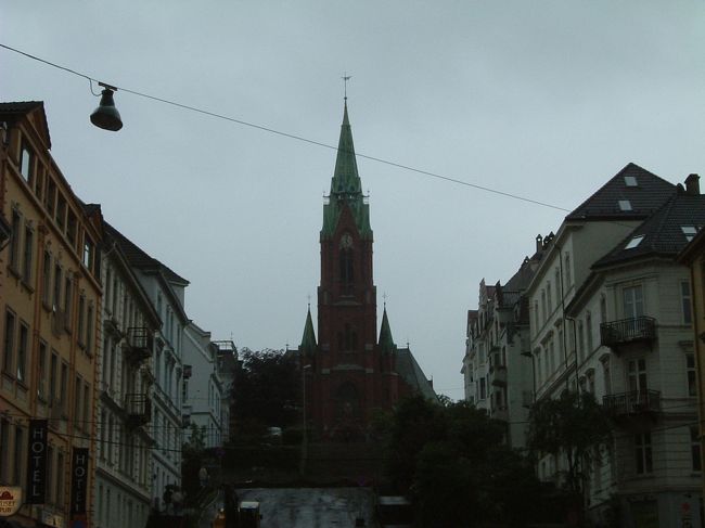 シュリンプバーガーとストロベリーを食べ再びベルゲン観光へ。