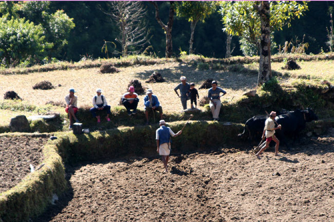 どの国を旅しても男たちの姿は何時も路端や居酒屋の様なところに屯してくちゃくちゃお喋りをしていることが多い。イスラム圏でもその姿は変わらないが、女性が外で働く姿はよく見かける。ここネパールでも野良仕事やお米の脱穀作業などをやっているのは殆どが女性である。男性は何をしているのだろう・・と思う。何時もぐうたらな姿である。ネパールの女性はとてもよく働いているという印象であった。