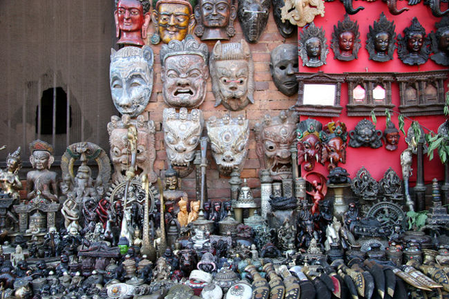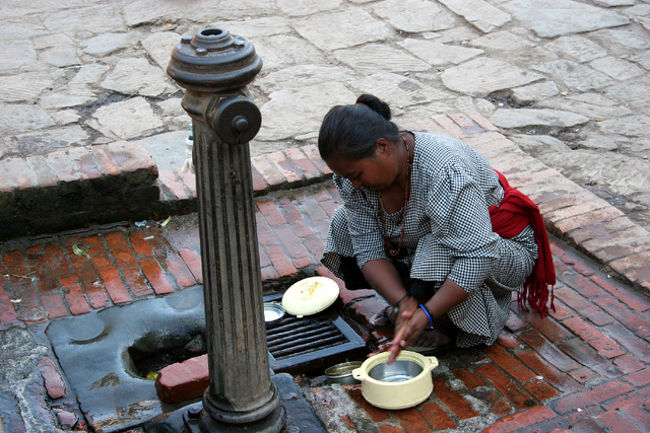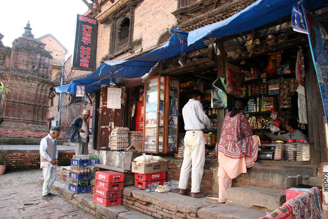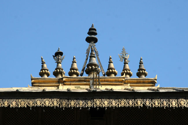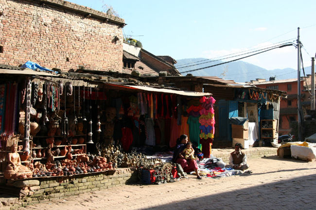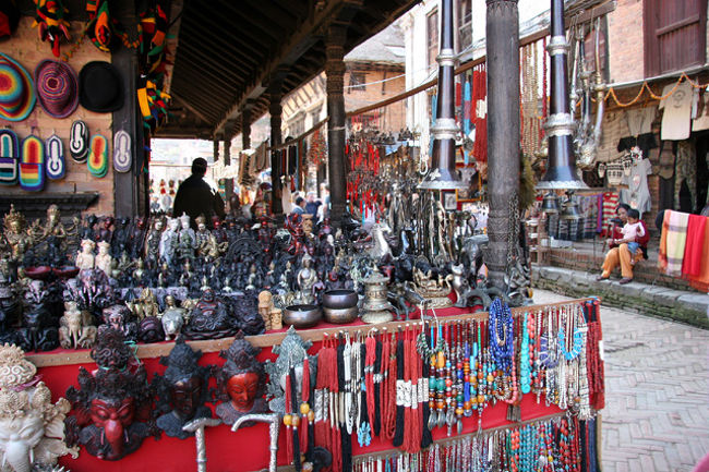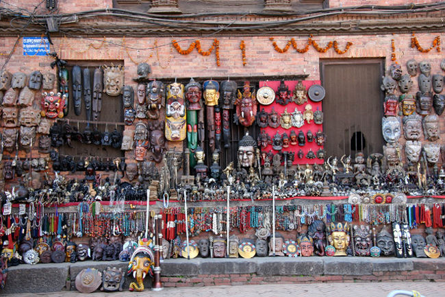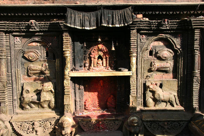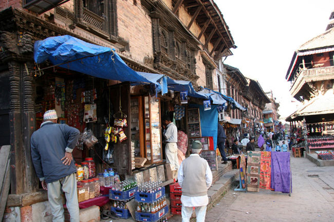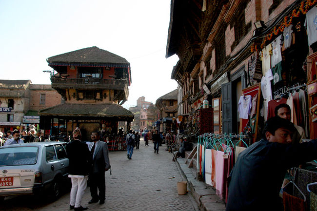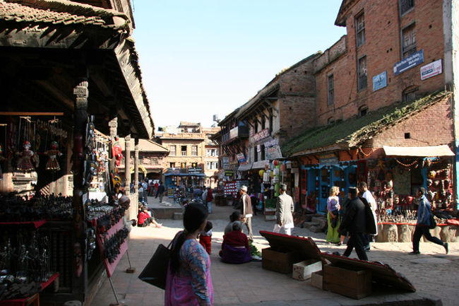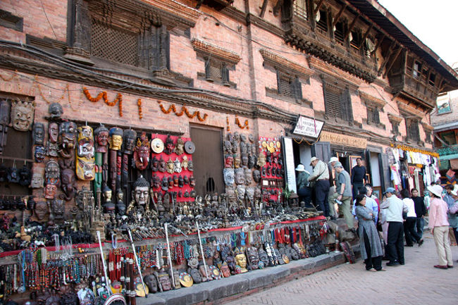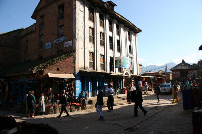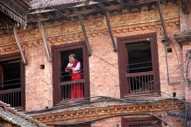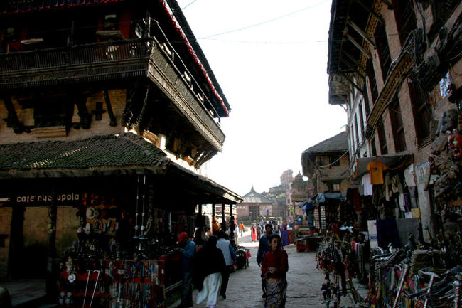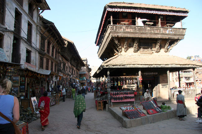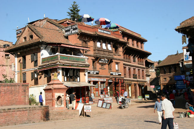 広場で目立つのがニャタポラ寺院の五重塔。18世紀に建てられたという高さ30mのカトマンズで最も高い塔である。正面の石段には伝説上の戦士や獅子、グリフィン、女神の石像が守護神として置かれている。観光客はそんなに多くはない。地元の老人たちが憩いの場として座り込んで話をしていた。